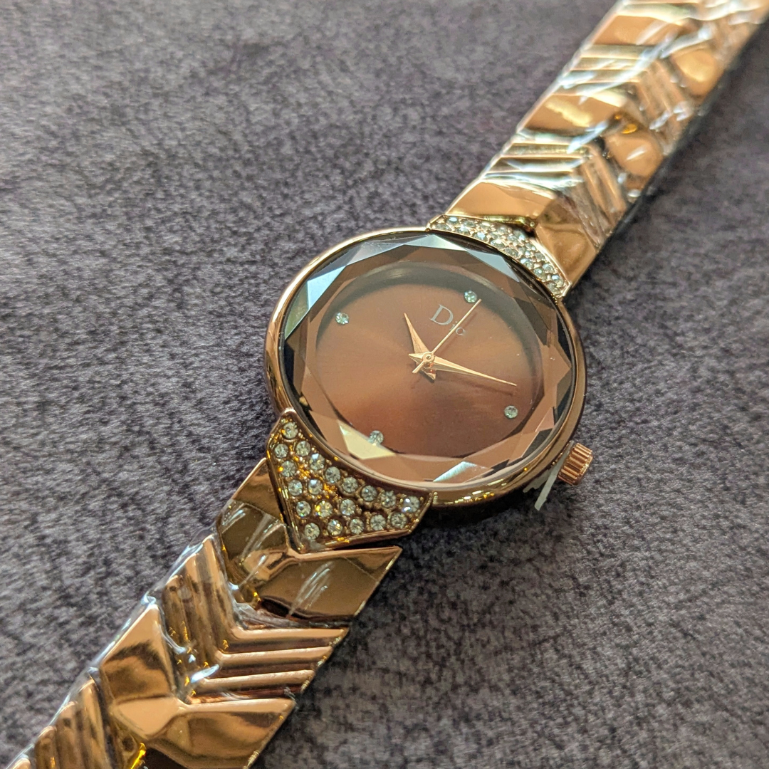 Round dial partywear watch with a rich copper finish – a perfect blend of elegance and modern charm.