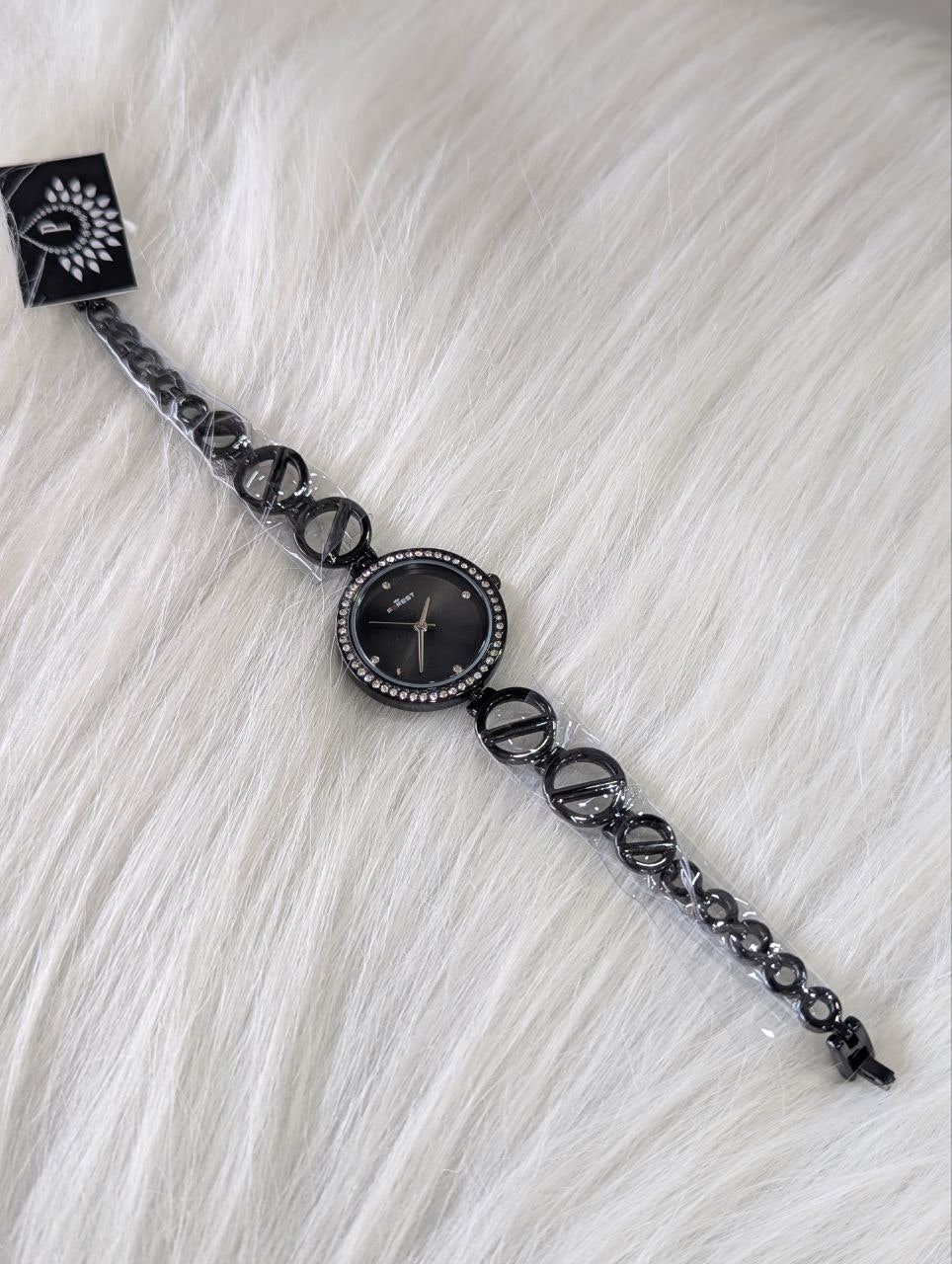 Beautiful fancy watch with a uniquely designed strap featuring elegant circular patterns for a standout look.