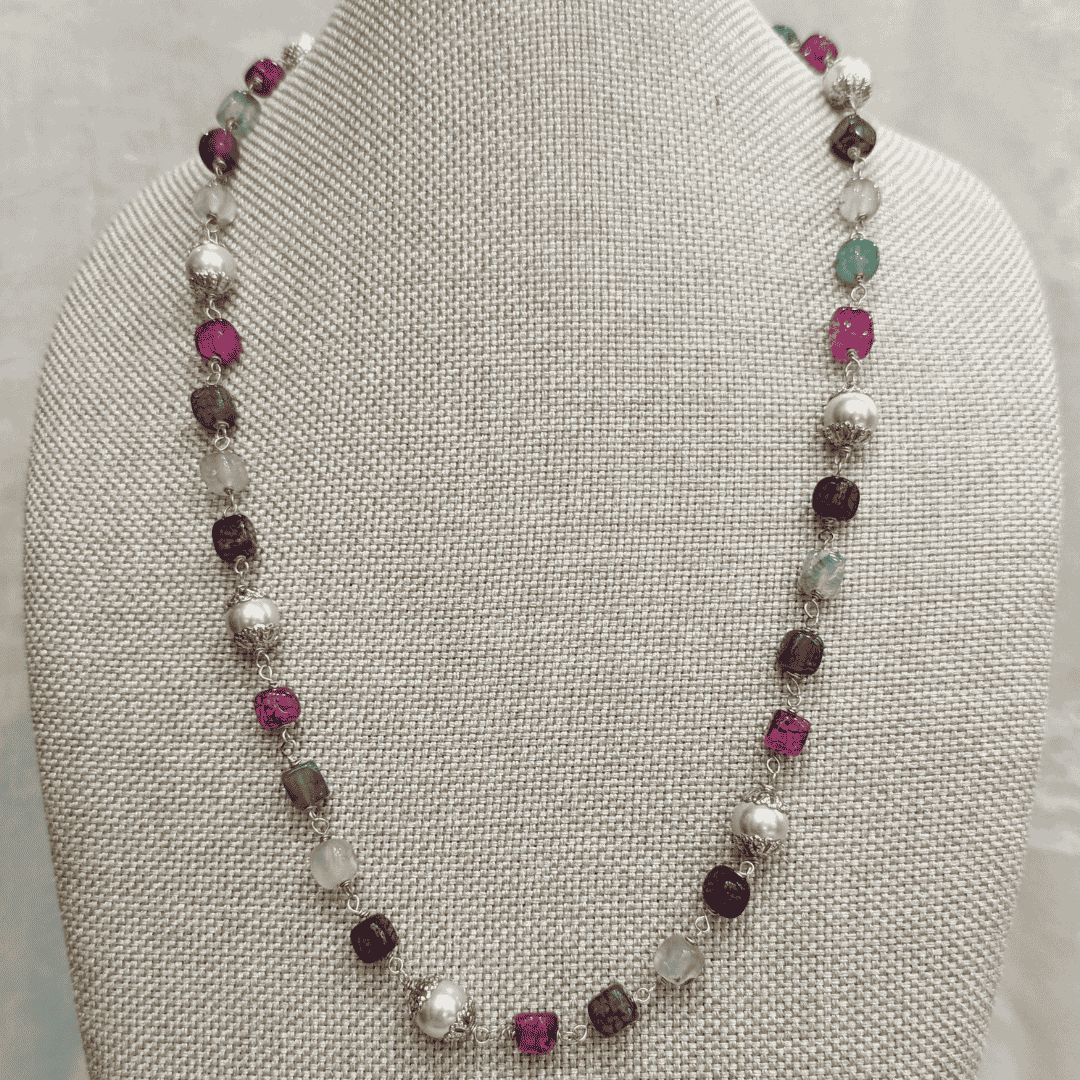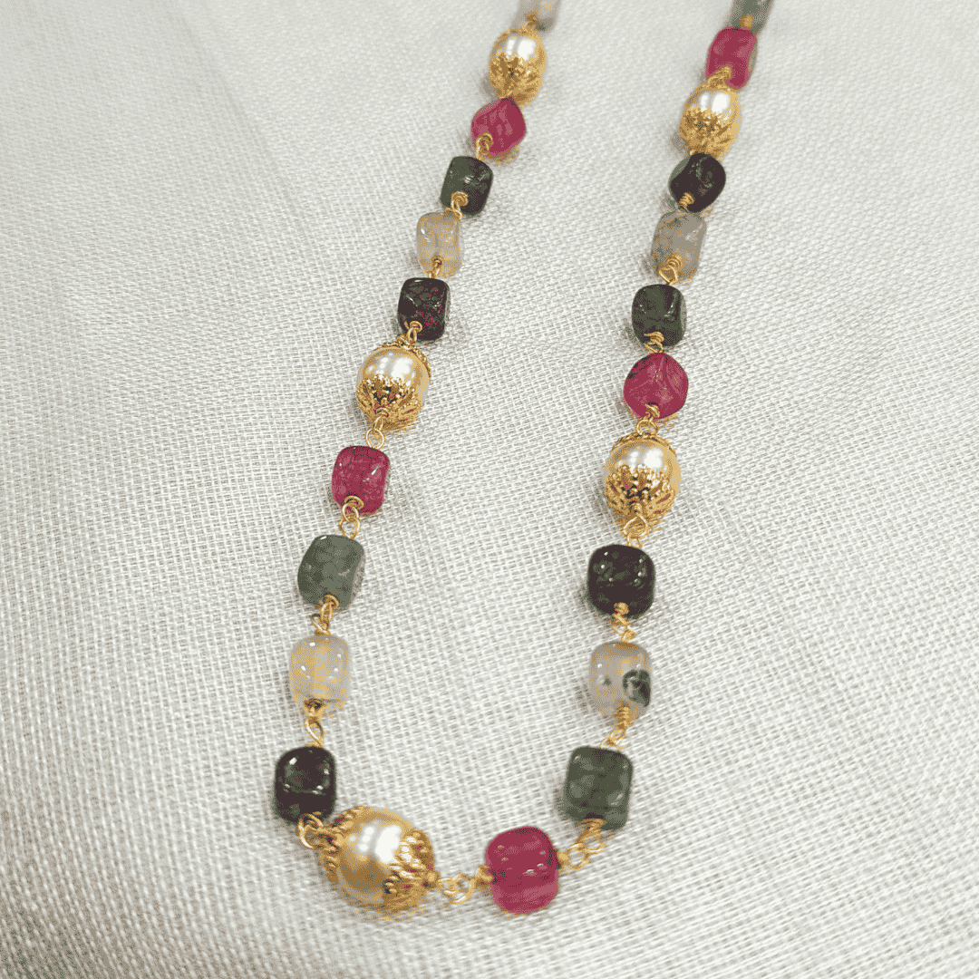 Ganthan maala with multi colour stones and pearls.