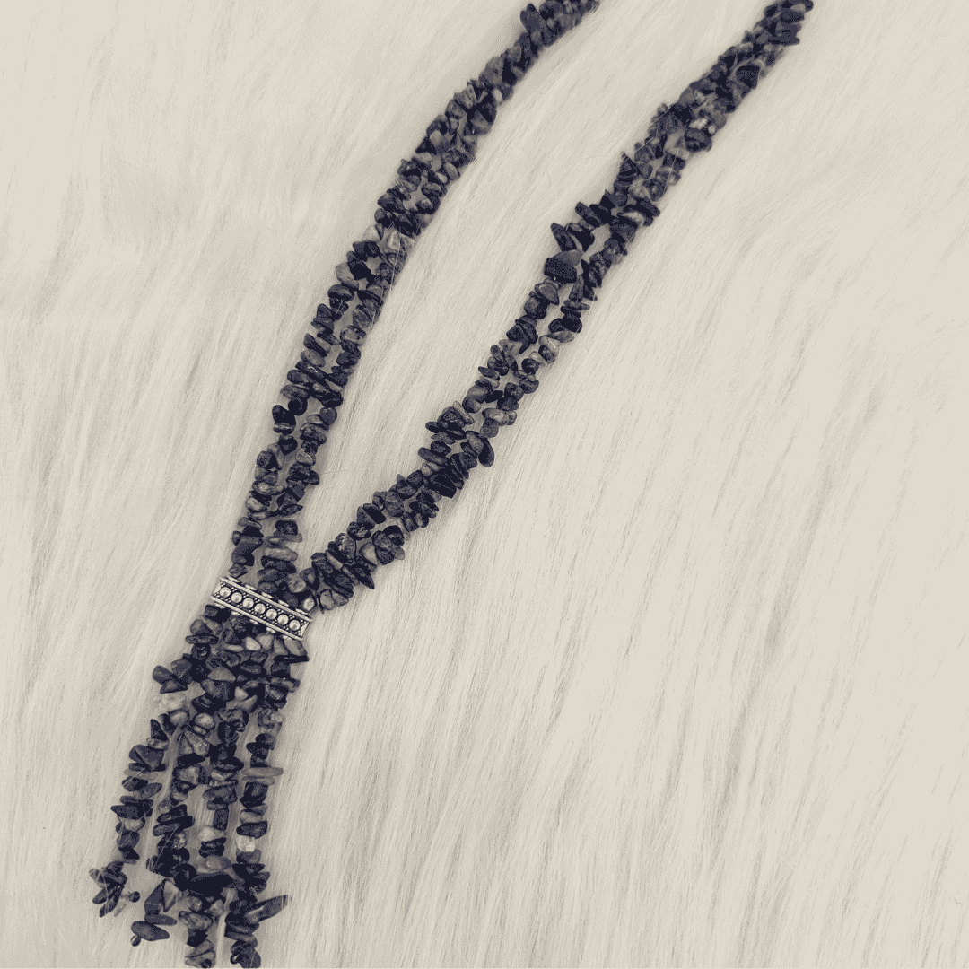This two-layer necklace showcases vibrant blue uncut beads arranged in a unique pattern, offering a fresh twist to traditional styling—perfect for both ethnic and modern outfits.