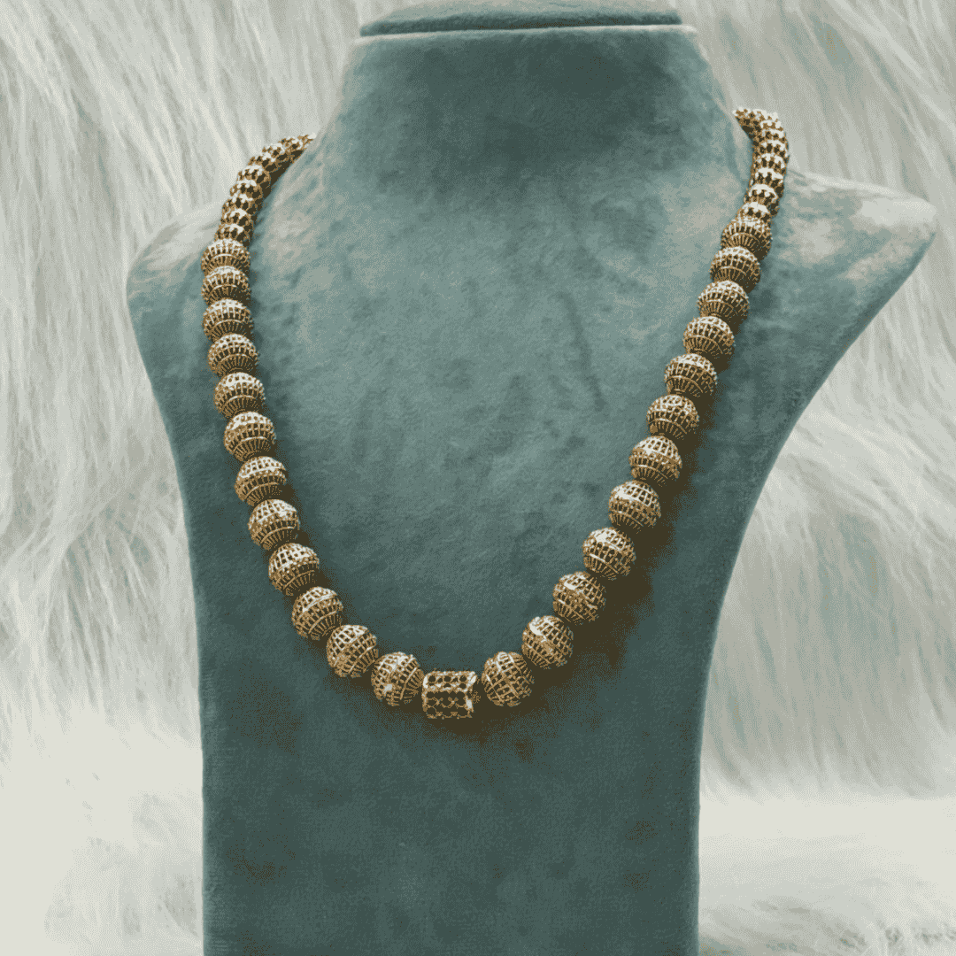 This Gundala Mala features a classic single-line design with evenly spaced golden balls, crafted without any pendant — a simple and elegant version of the traditional Gundala pattern.